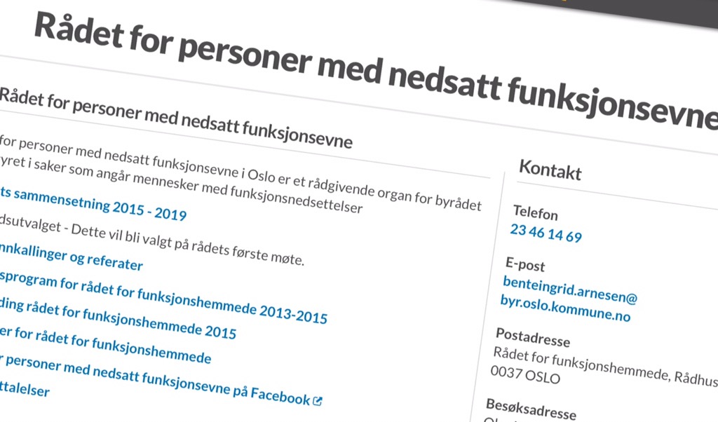 Rådet for personer med nedsatt funksjonsevne i Oslo kommune. For et underlig navn. Det er lov å undre seg over forskjellene på funksjonshemmede, personer med funksjonsnedsettelse, personer med nedsatt funksjonsevne. Jeg skal ikke bruke tid på det her. Men. ”Rådet for”. Rådet for hvem?